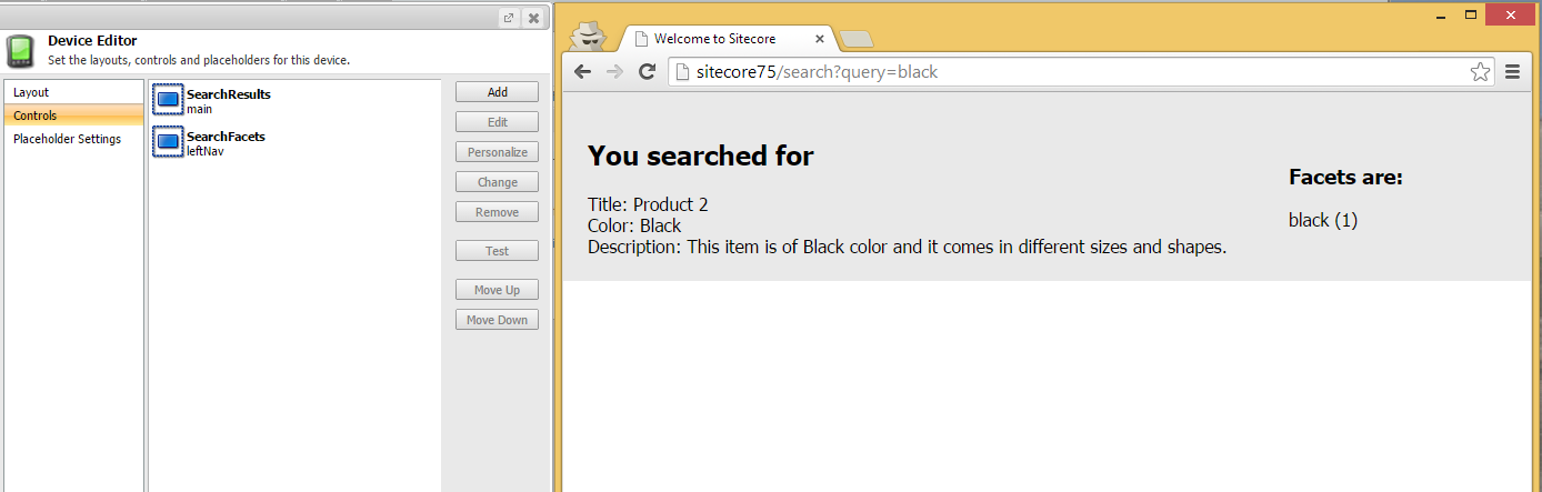 - SearchFacets sublayout handles the event, receives the facets data and then renders it to the page.